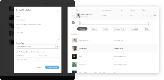 Compartilhe áudios com seu time no Planning Center, crie seu próprio repertório em nosso site ou no app ChartBuilder.