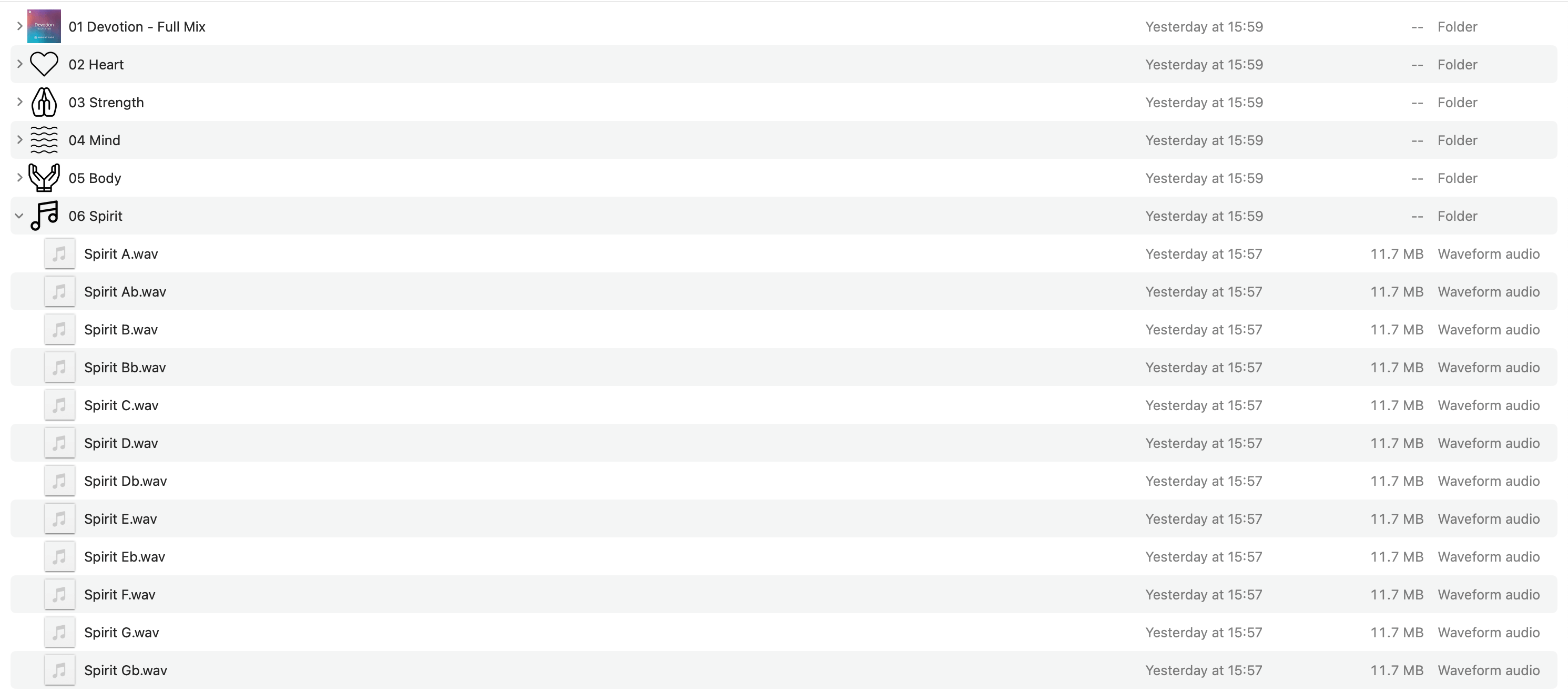 Each stem has been mixed and levelled so you can drag all 4 into your DAW and start with the same sound as the FULL MIX files. Feel free to boost and adjust the individual layers to create your own mixes.